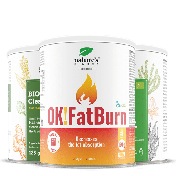 OK! FatBurn: vitamin C, ID-alG ™, L-karnitin, L-tirozin, ČIŠĆENJE JETRE Prašak pjegavog čička, prah šizanđe, kurkuma u prahu, ekstrakt artičoke Bio DETOX Pšenična trava, spirulina, klorela, ječmena trava, losos.
