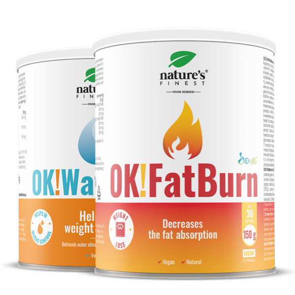 OK! FatBurn s aktivnim sastojkom ID-alG ™ klinički je dokazano da pomaže u gubitku tjelesne masti, OK! WaterOut ubrzava izlučivanje viška vode iz tijela i pomaže u uklanjanju viška kilograma.