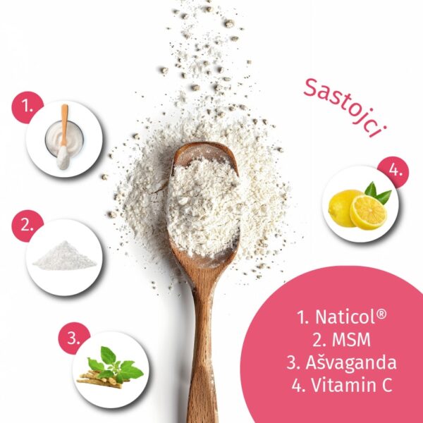 Preporučena dnevna doza je 10 g (2 mjerice). Pomiješajte u vodi i pričekajte 2 minute da se kolagen potpuno otopi. S 10 g praha unosite 5 g Naticol kolagenih peptida.